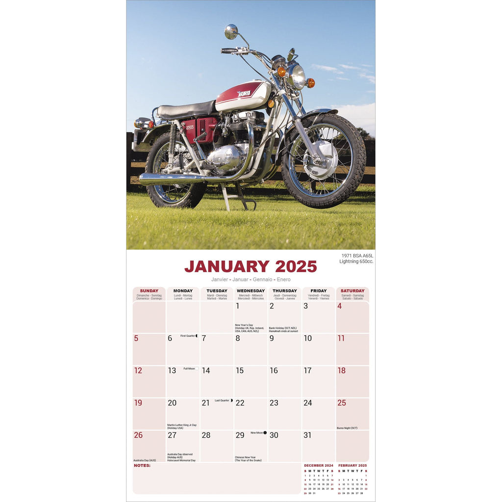 Classic British Bikes Wall 2025 Calendar